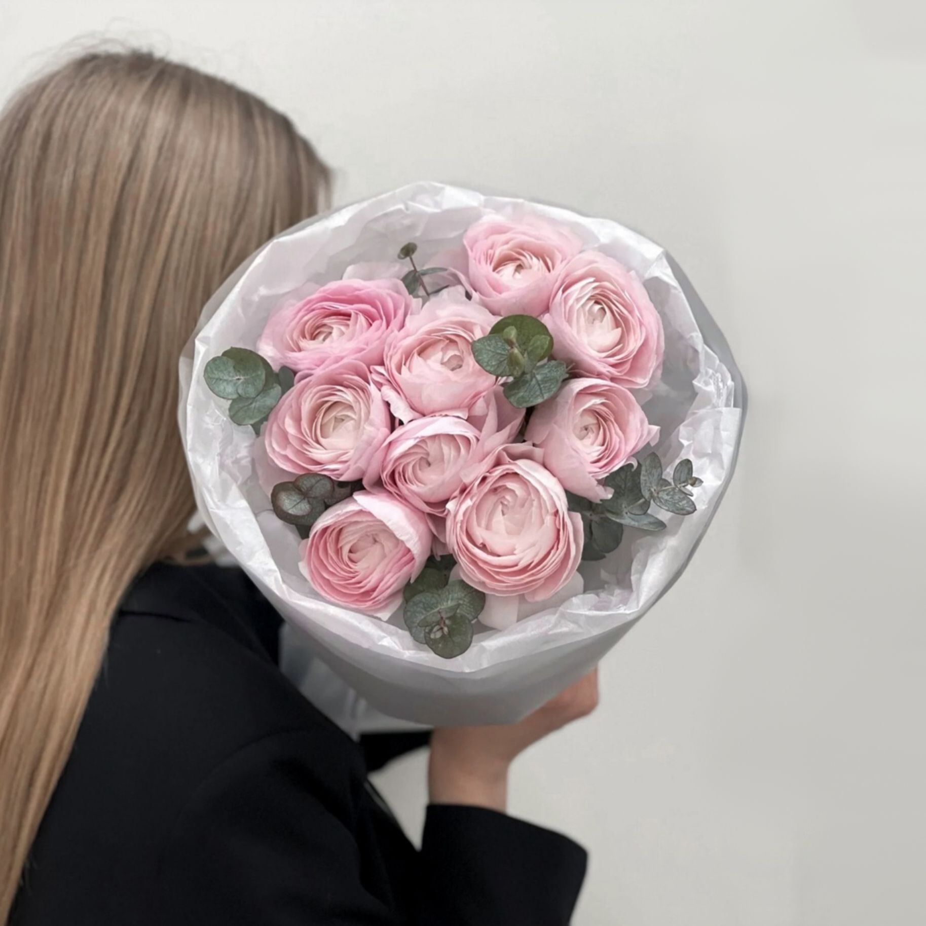 Ранункулюсы премиум с эвкалиптом «Fortuna»