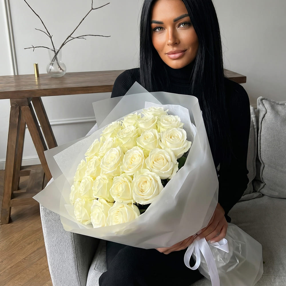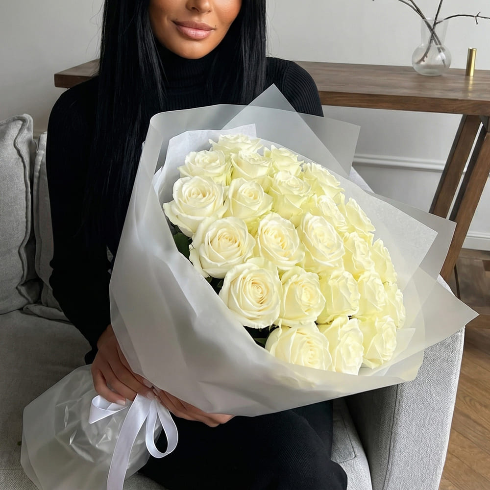 Состав: 25 белых роз Эквадор (PREMIUM)